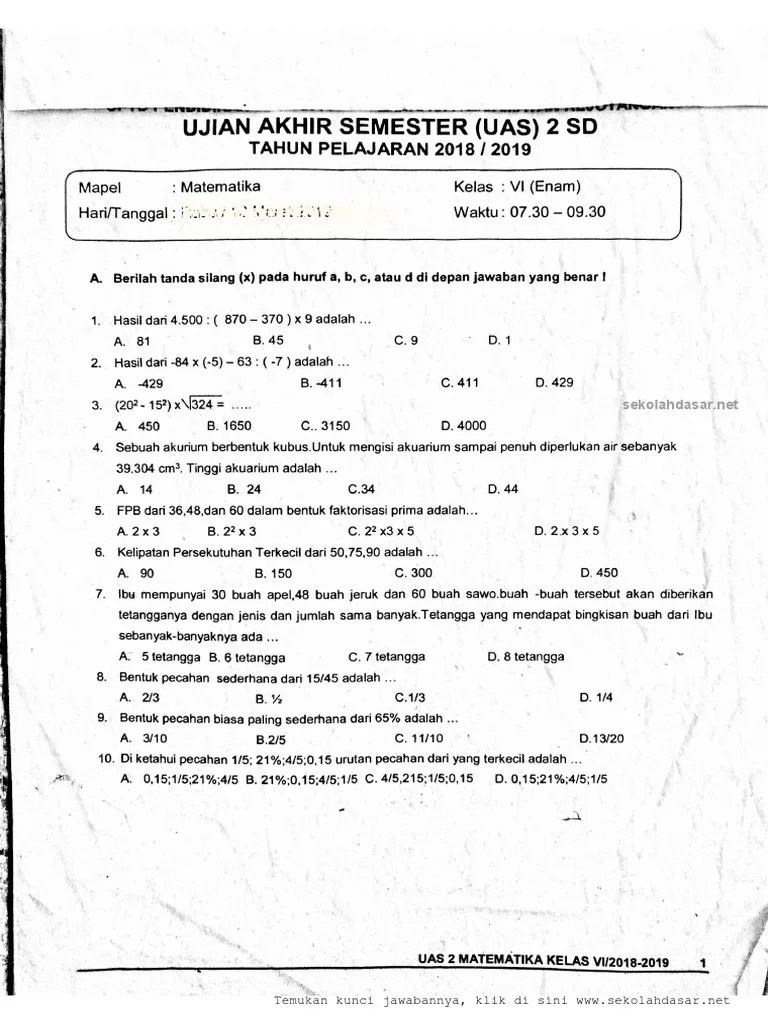 Soal Ujian Kelas 6 Matematika 2019 : Soal Try Out Matematika Kelas 6 Dan Kunci Jawaban 2016 Kumpulan Contoh Surat Dan Soal Terlengkap / 2016 11 soal uas matematika kelas 6 semester 1 plus kunci jawaban.html2019 04 contoh soal hots pai sd kelas 5.html2019 04 soal menantang bagian 4 bukan soal .